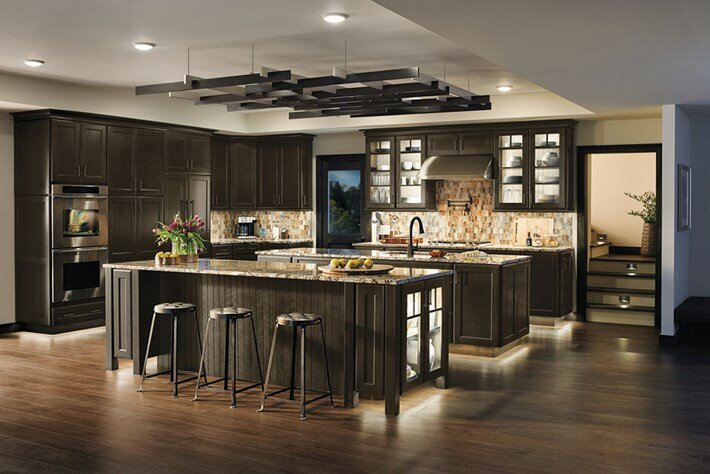 A small change with a big impact; changing or adding some lights brings out minute details to the spotlight. Adding task lights in places such as above counters, under cabinets, and above the kitchen island are important changes to update a kitchen. Accent lights as track lights add to the decor and ambiance. Change the chandeliers with modern pendant lamps with an industrial and rustic look.